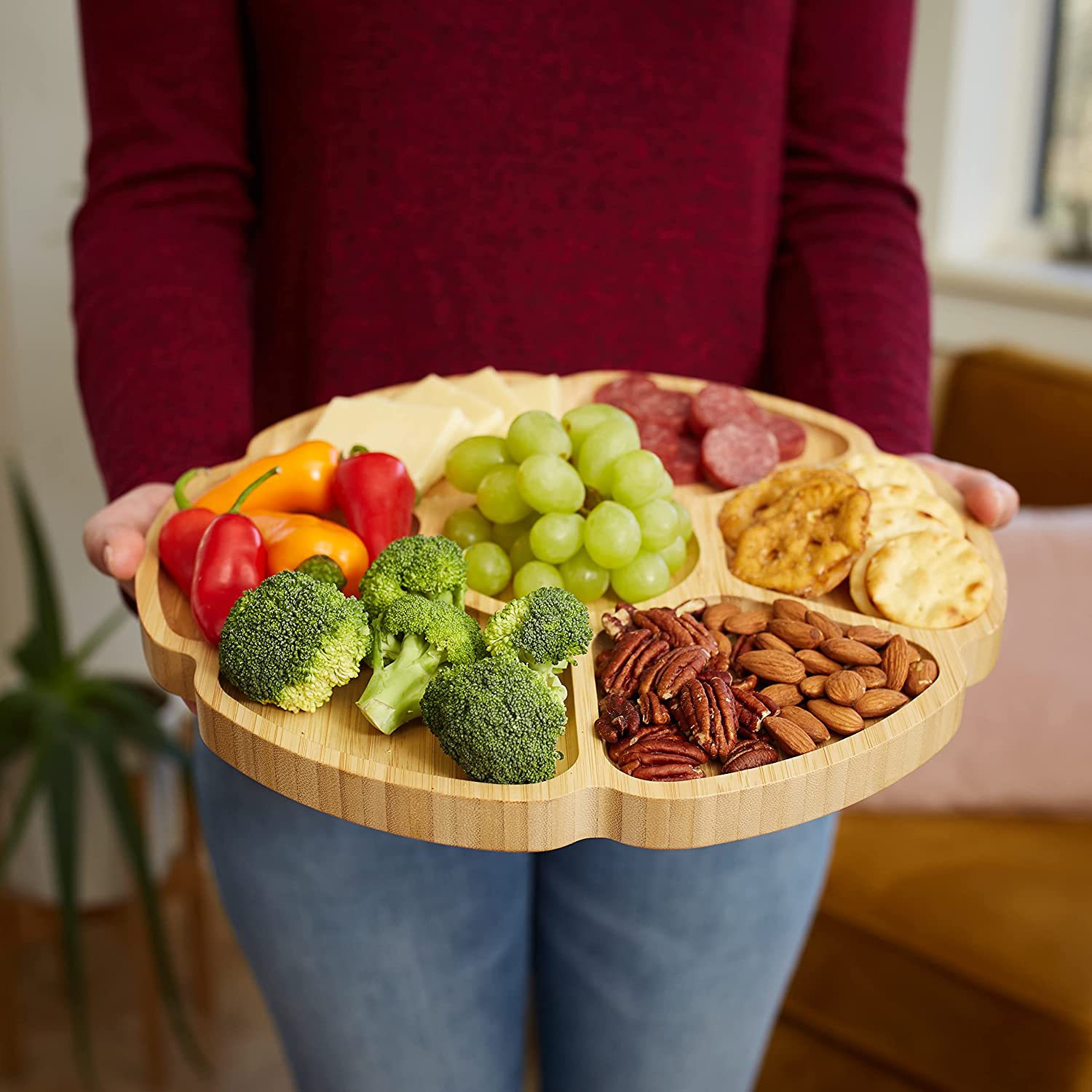 Bamboo Lazy Susan Divided Rotating Snack & Dried Fruit Tray